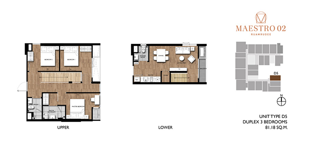 แบบ 3 ห้องนอน ดูเพล็กซ์ (พื้นที่ใช้สอย 77.0-87.0 ตร.ม.)