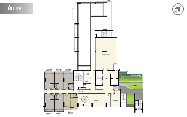 ชั้น 28 เป็นชั้นที่มีห้องพักอาศัย 6 ยูนิต มีห้องสมุด และห้อง Social Club