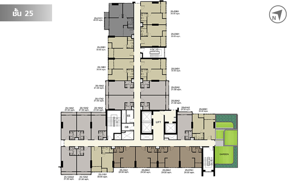 ชั้น 25 มีห้องพักอาศัยทั้งหมด 22 ยูนิต และมีสวนหย่อมเล็กๆ อยู่ทางทิศตะวันออกด้วยค่ะ