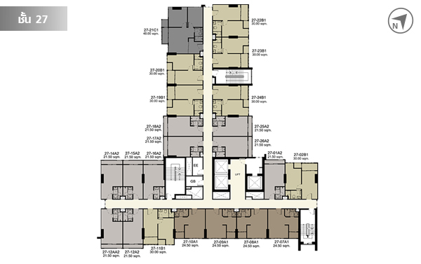 ชั้น 27 มีห้องพักอาศัยทั้งหมด 22 ยูนิต