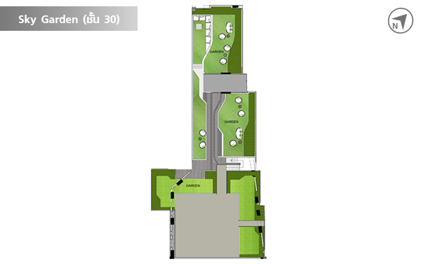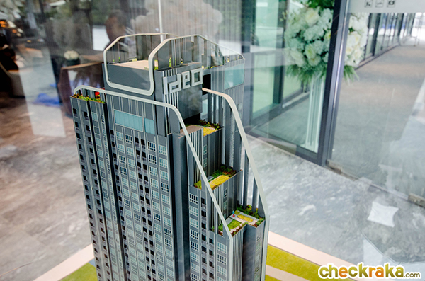 มองจากด้านบนโมเดลโครงการจะเห็นสวนหย่อมชั้น Sky Garden และสระว่ายน้ำ ของชั้น 29 และ 30