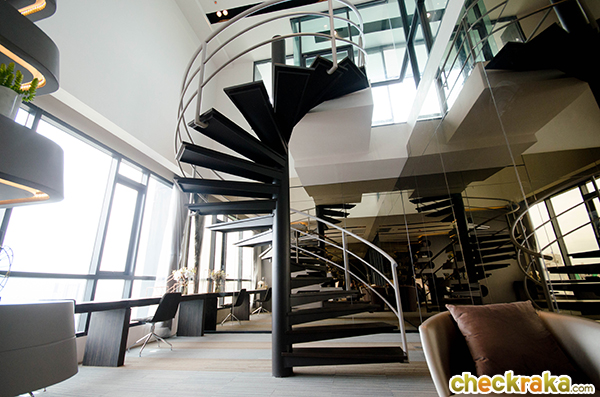 ในห้องสมุดมีบันไดวนเชื่อมต่อไปยังสวนหย่อมชั้น 29 สระว่ายน้ำ และฟิตเนส ได้อย่างสะดวกสบายเลยค่ะ
