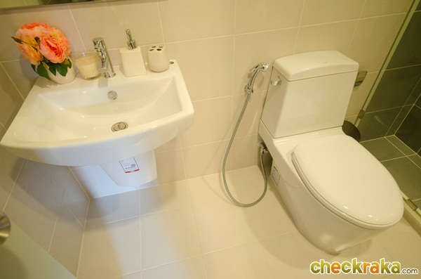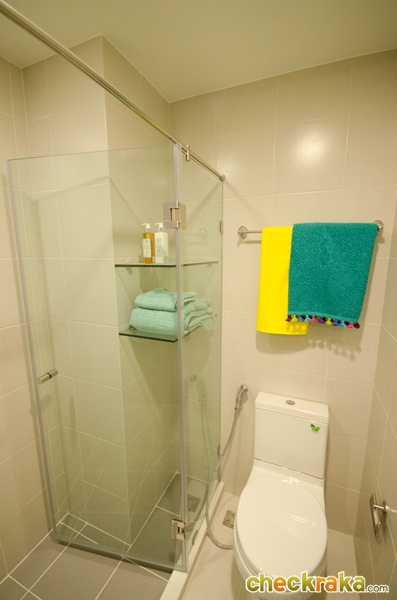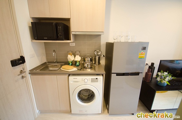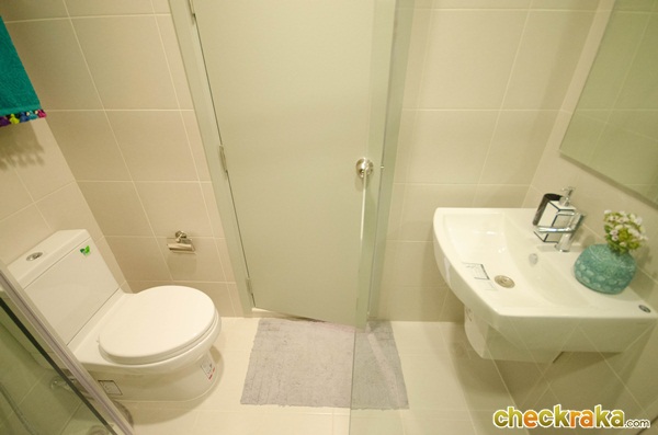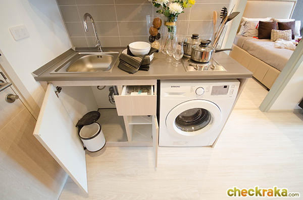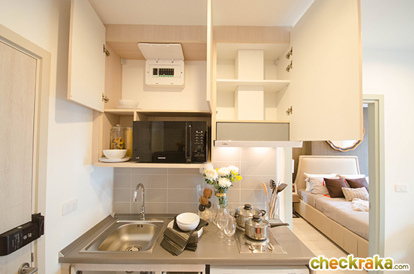- รูปแบบห้องและวัสดุ - ห้องพักอาศัยมีทั้งหมด 4 แบบด้วยกันค่ะ แบบที่1 ห้อง Studio 21.5 ตร.ม. แบบที่ 2 ห้อง 1 bed 24.5 ตร.ม. แบบที่3 1 bed 30 ตร.ม. และแบบที่ 4 ห้อง 2 bed 48 ตร.ม. ภายในห้องมีความพิเศษตรงที่มีตัวล็อคกระจกระเบียง 2 ชั้น เพื่อกันลมกระแทก และให้ Digital Door Lock ของซัมซุงทุกห้อง ประตูเคลือบลามิเนตทั้งด้านนอกและด้านในเพื่อความสวยงาม ทางโครงการให้เคาน์เตอร์ครัวมาครบ ทั้งชั้นวางของด้านบนและด้านล่าง มีเครื่องดูดควันและเตาไฟฟ้า 2 หัวให้ รวมถึงซิงค์ล้างจานและปูกระเบื้องที่ฝนังครัวกันเปื้อนให้ด้วยค่ะ ในห้องน้ำให้สุขภัณฑ์ของ Cotto มีกระจกกั้นฝั่งเปียกฝั่งแห้งเป็นสัดส่วน พื้นห้องเป็นลามิเนตหนาทั้งห้อง ยกเว้นห้องน้ำและระเบียงที่เป็นกระเบื้องค่ะ
