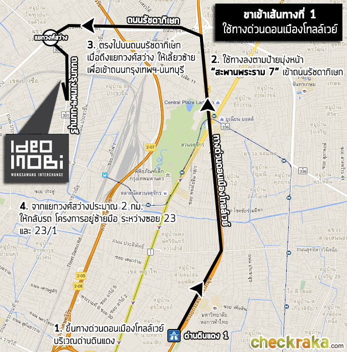 - ขาเข้าโครงการเส้นทางที่ 1 - มาจากทางยกระดับอุตราภิมุข (ดอนเมืองโทลล์เวย์)