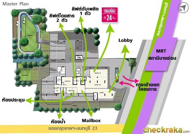 - การเดินทางเข้า-ออกโครงการ - ตัวทำเลโครงการเกาะแนวรถไฟฟ้าสายสีม่วง ห่างจากสถานีบางซ่อนเพียง 11 เมตร และไม่ไกลจากจุด Interchange เชื่อมต่อรถไฟฟ้าสายสีแดงอ่อน ห่างจากโครงการประมาณ 400 เมตร ซึ่งทั้ง 2 สายนี้อยู่ระยะที่สามารถเดินเท้าไปใช้บริการได้ สำหรับถนนสายหลักของโครงการคือ "ถนนกรุงเทพฯ-นนทบุรี" การจราจรไม่ติดขัดมากนักค่ะ ถนนเส้นนี้ยังสามารถเชื่อมไปยังถนนรัชดาภิเษก, ถนนประชาราษฎร์สาย 1, ถนนประชาราษฎร์สาย 2, ถนนประชาชื่น, ถนนติวานนท์ ฯลฯ