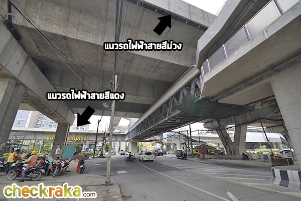 ถัดมาอีกนิดเราจะเห็น Skywalk ทางเดินเชื่อมระหว่างรถไฟฟ้าสายสีม่วงและสายสีแดงค่ะ