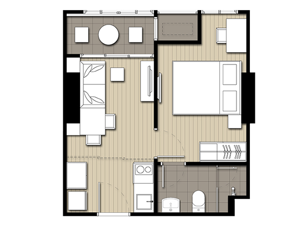 Lay out ห้อง 1 bed ขนาด 30 ตร.ว.