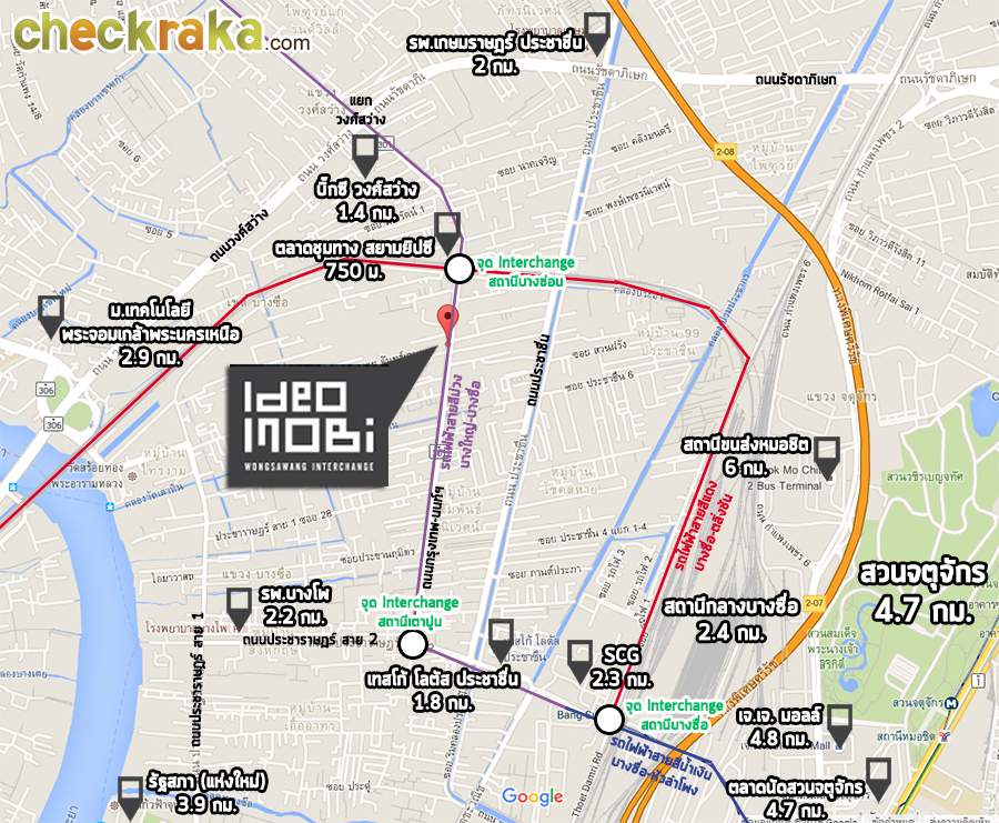 แผนที่โครงการ "ไอดีโอ โมบิ วงศ์สว่าง-อินเตอร์เชนจ์ (Ideo Mobi Wongsawang-Interchange)"