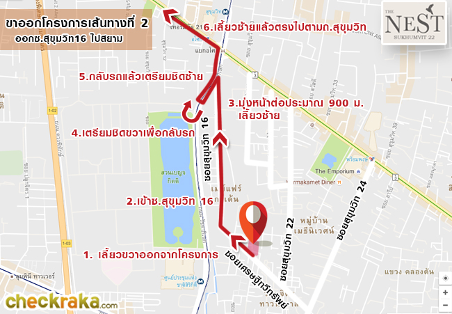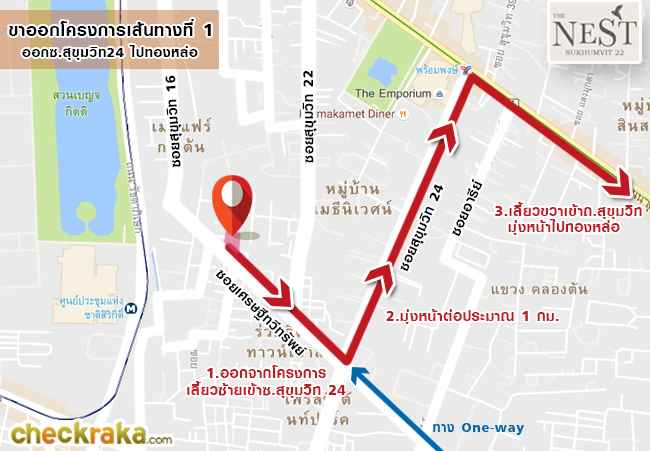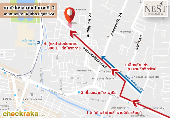 - การเดินทางเข้า-ออกโครงการ - เส้นทางเข้าออกโครงการมีหลายเส้นทางค่ะ ทางแรกคือ ถ้ามาตามถนนสุขุมวิท ก็มุ่งหน้ามาตามเส้นทางรถไฟฟ้าได้เลย พอถึงแยกอโศกก็เตรียมชิดขวาแล้วเลี้ยวเข้าซอยสุขุมวิท 22 มุ่งหน้าต่อประมาณ 1 กิโลเมตรก็เลี้ยวขวาเข้าซอยเศรษฐีทวีทรัพย์ ตรงไปก็อีกนิดเดียวก็ถึงโครงการค่ะ แต่ถ้ามาจากถนนพระรามสี่ ก็เลี้ยวขวาเข้าซอยอารีย์ แล้วเลี้ยวซ้ายเข้าซอยเศรษฐีทวีทรัพย์ได้ค่ะ ส่วนทางออกจากโครงการสามารถออกไปทางซอยสุขุมวิท 16 ก็ได้ หรือจะออกทางซอยสุขุมวิท 24 ก็ได้ค่ะ