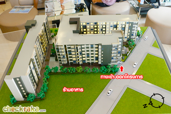ย้ายเข้ามามองอีกฝั่งกันบ้าง ทางโครงการจัดโต๊ะรับประทานอาหารไว้ตรงใกล้ๆ ประตูทางเข้า-ออก