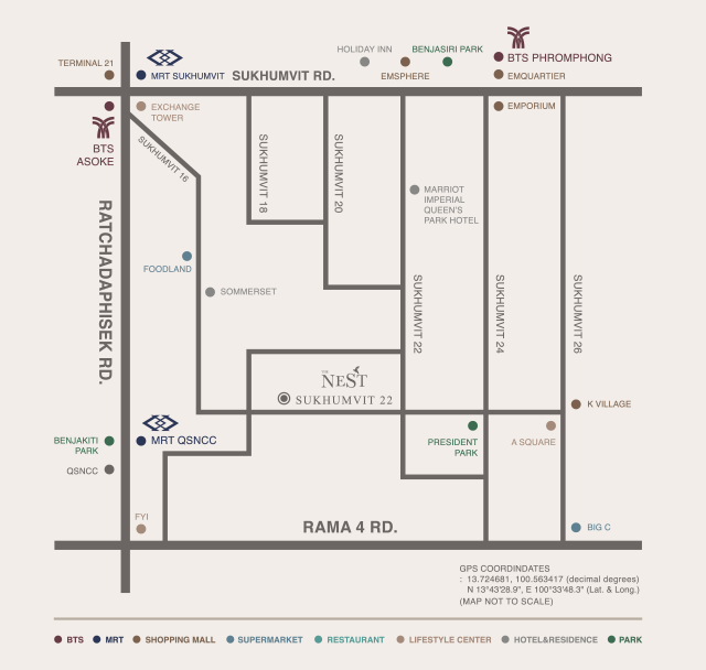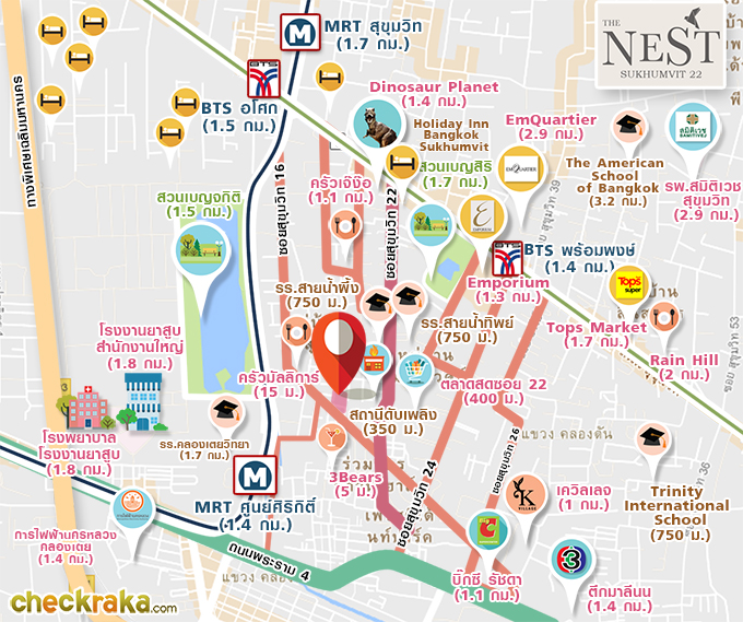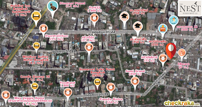 แผนที่แสดงสถานที่ใกล้เคียงโครงการ The Nest Sukhumvit 22