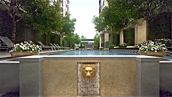 บรรยากาศจำลองสวนและสระว่ายน้ำ