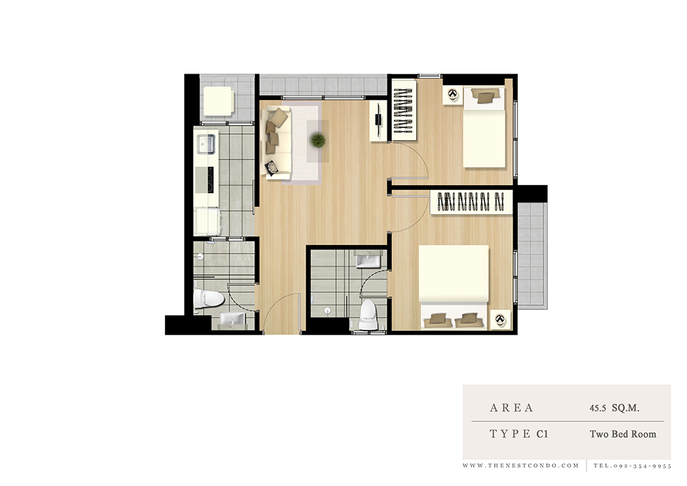 - C1 45.5 ตร.ม. (คลิกเพื่อชม Plan)