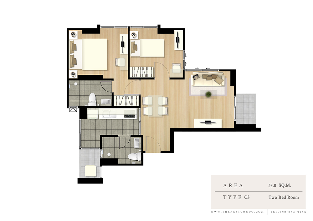- C3 53.0 ตร.ม. (คลิกเพื่อชม Plan)