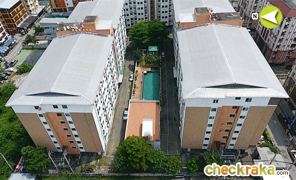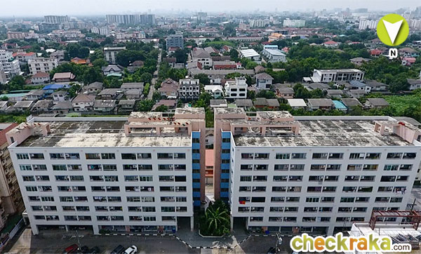 วิวอาคารฝั่งทิศตะวันออก : อาคาร 3 และอาคาร 4 ห้องพักอาศัยฝั่งนี้จะติดกับอาคารพักอาศัยเพื่อนบ้าน ความสูง 8 ชั้น