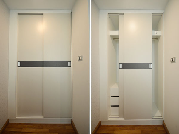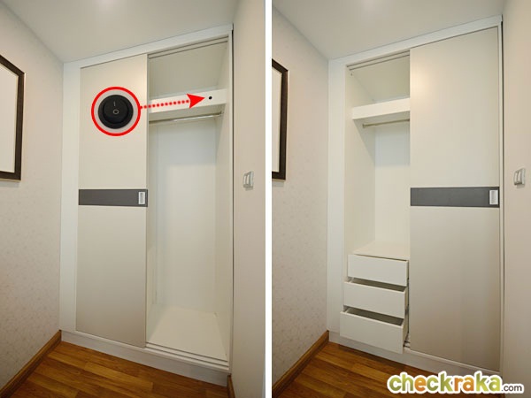 เปิดเลื่อนได้ทั้งทางซ้าย และทางขวา พร้อมปุ่มสวิตช์เปิด-ปิดไฟภายในตู้เสื้อผ้ามาให้ด้วย
