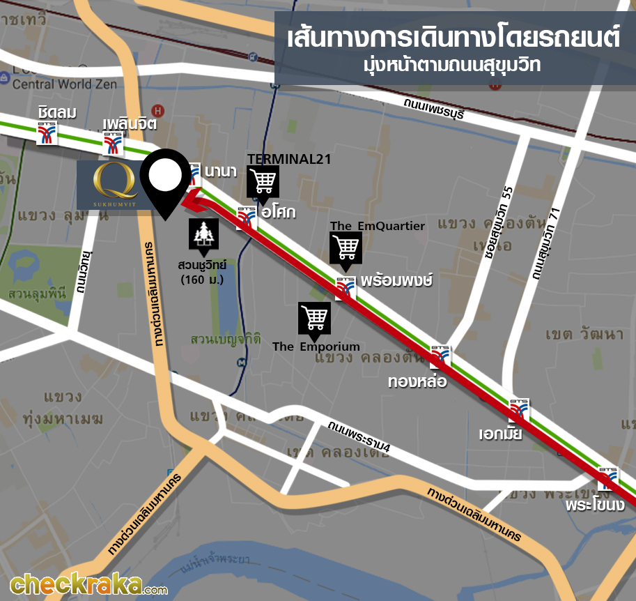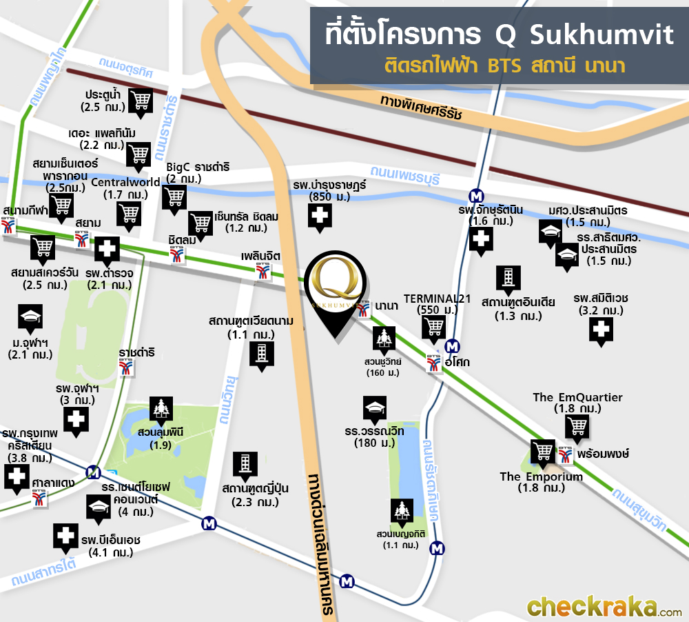 แผนที่แสดงสถานที่ใกล้เคียง โครงการ Q Sukhumvit
