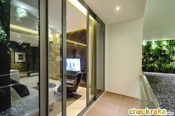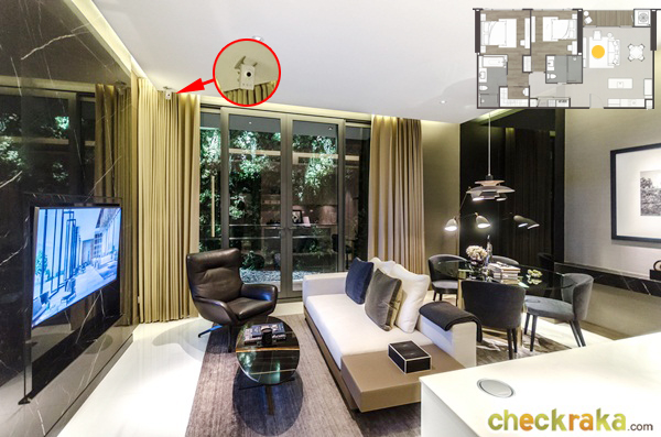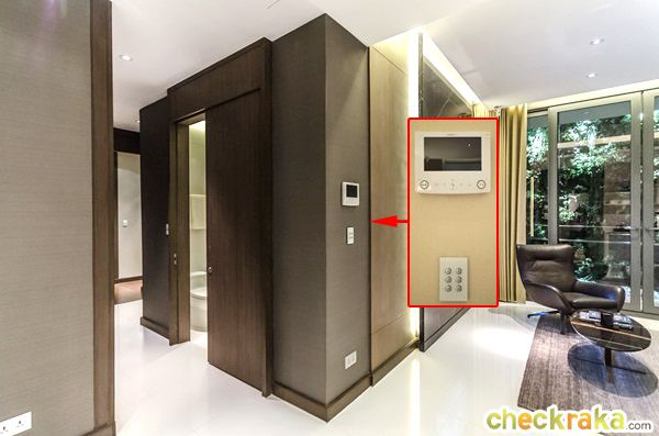 มีกล้อง CCTV ให้ 1 จุด จะอยู่ในระบบ home automation system จะทำงาน 3 อย่างคือ 1. มอนิเตอร์ดูบริเวณภายในห้อง 2. เปิดปิดแอร์ ได้เฉพาะห้อง Master Bedroom และห้องนั่งเล่น 3. เปิดปิดไฟได้ทั้งห้อง ยกเว้นห้องน้ำ และห้องแม่บ้าน ซึ่งสามารถทำทุกอย่างผ่าน Smart Phone ได้เลย เป็นการช่วยอำนวยความสะดวกให้กับลูกบ้าน
