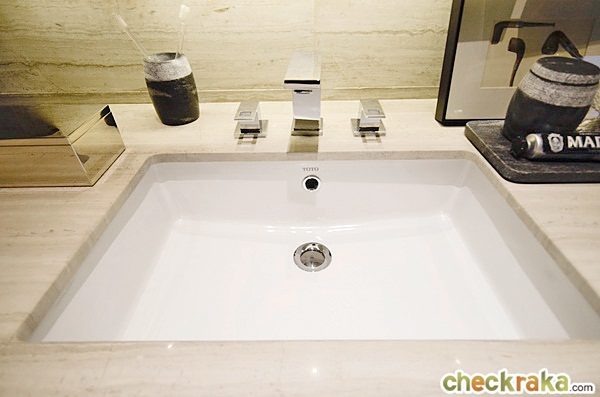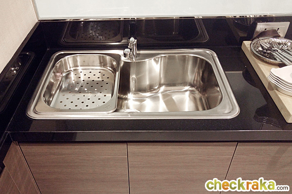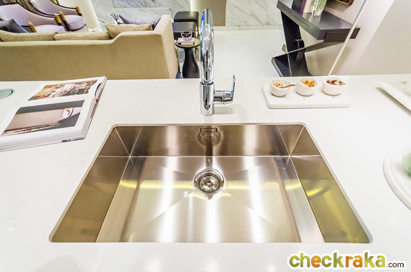 อ่างล้างจานของ Blanco จากฝรั่งเศส ก๊อกน้ำของ Grohe ดึงสายมาใช้งานได้ จะได้ขนาดใหญ่กว่า 2 ห้องนอน