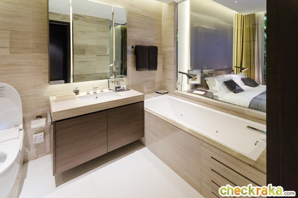 ห้องน้ำเป็นแบบ Sexy Bath สุขภัณฑ์ และวัสดุในห้องน้ำได้เหมือนกันกับห้องน้ำในห้อง Master Bedroom ของห้องที่แล้ว