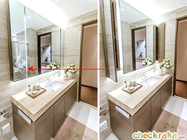 กระจกได้ตามแบบนี้เลยค่ะ สามารถเปิดได้ด้านในเป็นช่องเก็บของ