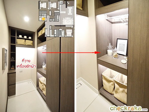 ตู้เก็บ Storage อยู่อีกฝั่ง และ Built-in เป็นที่สำหรับแขวนผ้ามาให้แบบนี้