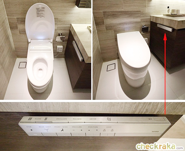 ภายในได้โถสุขภัณฑ์ และอ่างล้างหน้าของ TOTO