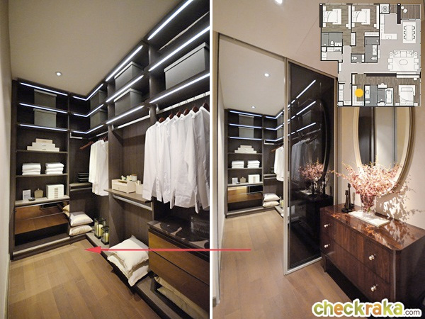 ในห้อง Master bedroom จะได้ walk in closet ได้ตู้เสื้อผ้าตามแบบนี้ แต่ Layout ห้องนี้จะไม่ได้โต๊ะเครื่องแป้ง