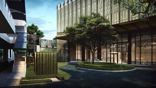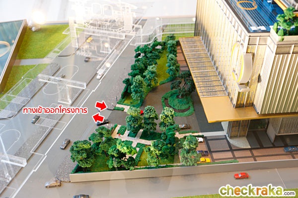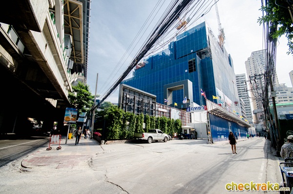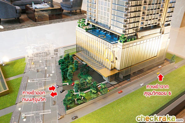 ทางเข้าฝั่งถนนสุขุมวิทด้านหน้าโครงการจะเป็นพื้นที่ Landscape ซึ่งเป็นที่ตั้งของสำนักงานขายในปัจจุบัน
