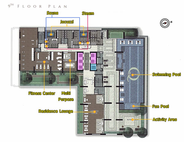 Fitness Room และ Residence Lounge จะอยู่ฝั่งด้านทิศใต้ของอาคาร