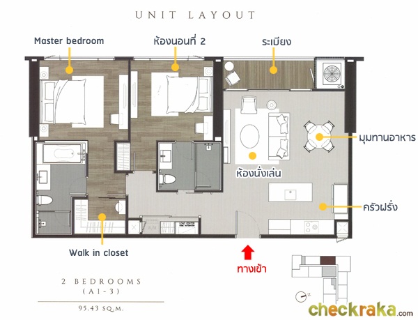 - แบบ 2 Bedroom ขนาด 95.43 ตร.ม. ราคาเริ่มต้น 26.5 ล้านบาท