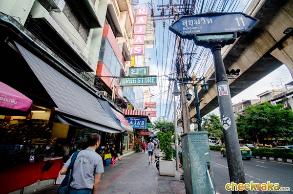 มุ่งหน้าต่อไปตามทางเท้าเลียบถนนสุขุมวิทก็จะมีห้างร้านต่างๆ เรียงรายเลยค่ะ