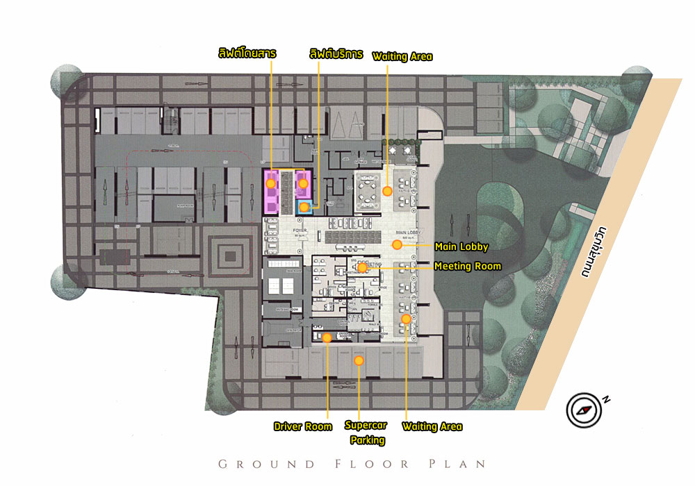 - ที่จอดรถ 645 คัน หรือประมาณ 236% ทั้งลานจอดรถใต้อาคาร และโดยรอบบริเวณชั้น 1 พร้อมพื้นที่จอดรถ Supercar อีก 8 คัน