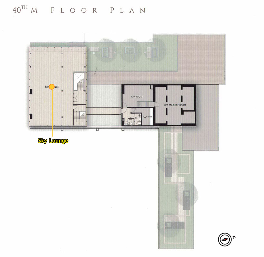 Floor Plan ชั้น 40 จะเป็นห้องพักขนาดใหญ่แบบ 4 ห้องนอน Duplex กับ Penthouse Duplex