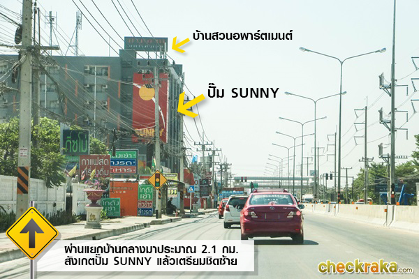 ก่อนถึงโครงการ จะมีปั๊มน้ำมัน SUNNY อยู่ด้านซ้ายค่ะ (ห่างจากโครงการประมาณ 120 ม.)