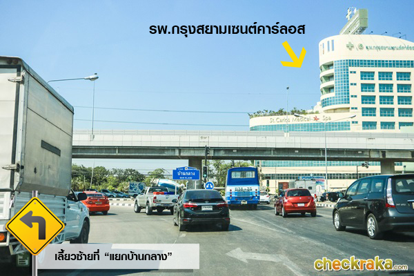 ก่อนจะเลี้ยวซ้ายไปยังโครงการ ด้านหน้าที่เราเห็นจะเป็นรพ.กรุงสยามเซนต์คาร์ลอส (ห่างจากโครงการประมาณ 2.2 กม.)