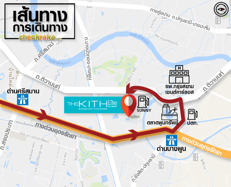 - การเดินทางเข้าโครงการเส้นทางที่ 2 ใช้ทางด่วนอุดรรัถยา ลงด่านศรีสมาน