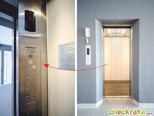 แต่ละอาคารมีลิฟต์โดยสาร 2 ตัวแบบไม่ล็อคชั้น