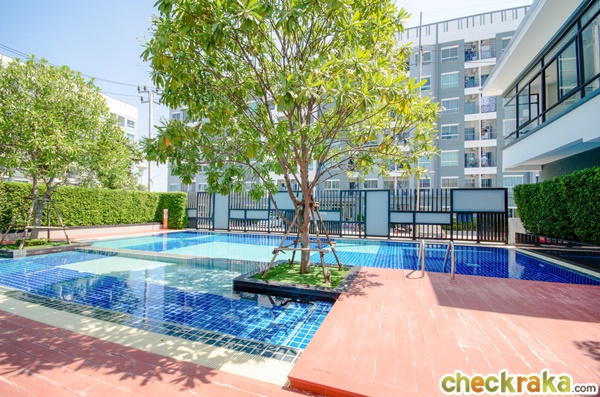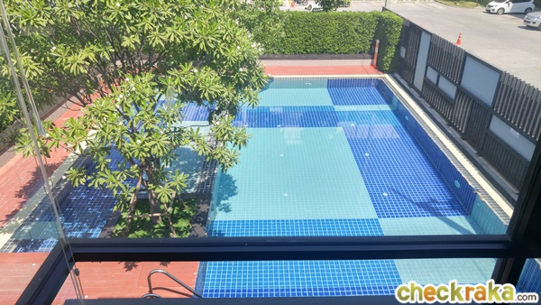 พื้นที่รอบสระว่ายน้ำปลูกเป็นรั้วต้นไม้ไว้ช่วยเพิ่มร่มเงาและเพิ่มความร่มรื่น