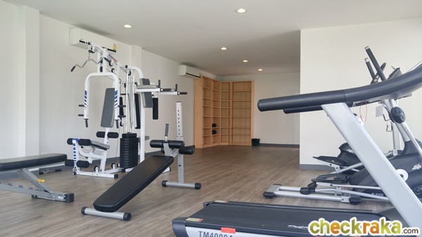 ห้องฟิตเนสเป็นกระจกสีเขียวตัดแสง มีเครื่องออกกำลังกาย 6 เครื่อง