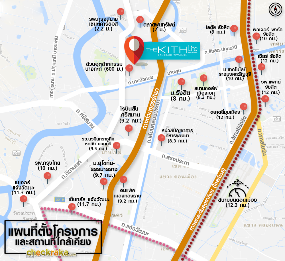 แผนที่ตั้งโครงการ เดอะคิทท์ ไลท์ บางกะดี-ติวานนท์ (The Kith Lite Bangkadi-Tiwanon) และสถานที่ใกล้เคียง