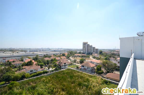 หันไปทางสวนอุตสาหกรรมบางกะดี ตัวอาคารติดกับที่ดินเปล่า และบ้านพักอาศัยความสูง 2-3 ชั้น