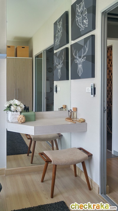 ตรงข้ามตู้เสื้อผ้าทางโครงการ Built-in เป็นโต๊ะเครื่องแป้งมาให้ดูเป็นตัวอย่าง