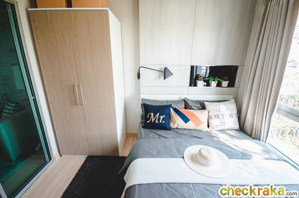 เหลือพื้นที่ข้างเตียงถึงหน้าต่างประมาณ 35 ซม. สามารถวางโต๊ะหัวเตียงขนาดกะทัดรัดได้