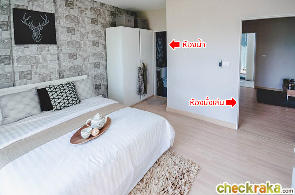 เข้ามาในห้องเจอกับห้องนั่งเล่นเชื่อมต่อกับห้องนอน
