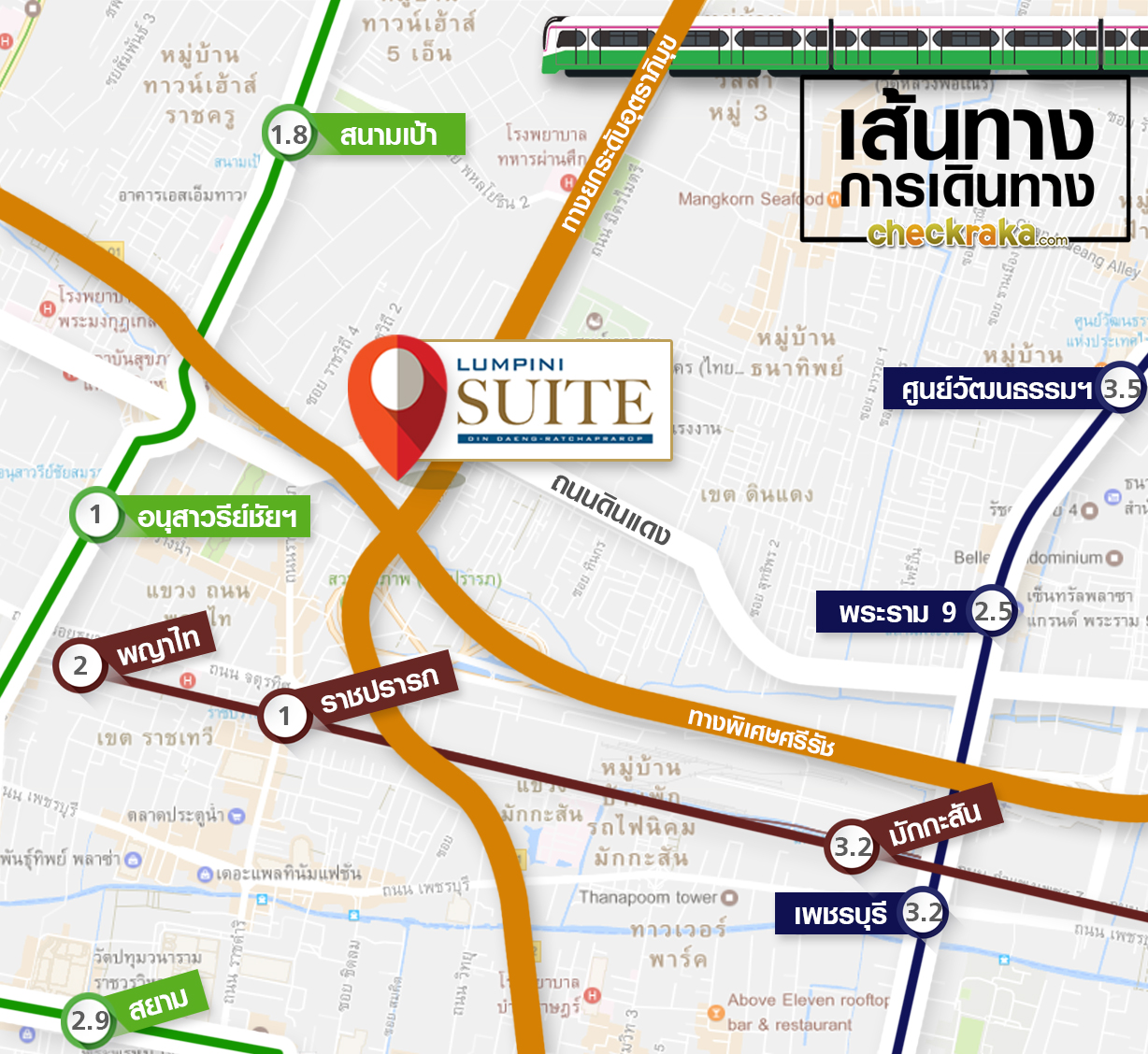 การเดินทางไปยังโครงการ ลุมพินี สวีท ดินแดง-ราชปรารภ (Lumpini Suite Din Daeng-Ratchaprarop) สามารถเดินทางไปได้หลายเส้นทาง ทั้งทางรถยนต์ ทางรถไฟฟ้าก็สะดวก รถเมล์ก็ผ่านหน้าโครงการตลอด ถือว่าตั้งอยู่ในทำเลที่เดินทางเข้าออกได้สะดวกมาก