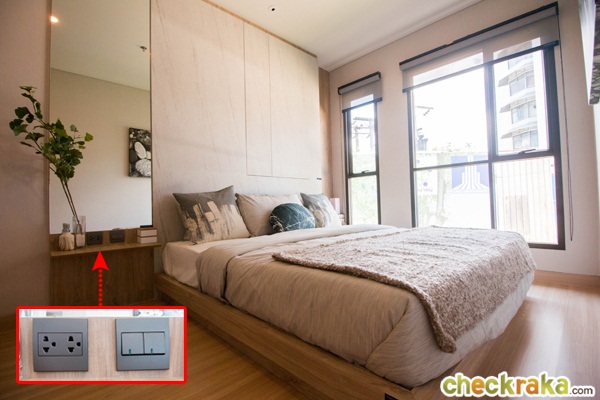 ติดตั้งปลั๊ก และสวิตช์ไฟมาให้ด้วย 1 จุด แต่ไม่มีโต๊ะข้างเตียง
