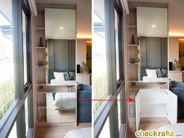 ควรเปิดตู้ด้วยความระมัดระวังไม่เช่นนั้นอาจจะชนกับเตียงได้