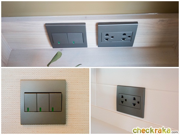 สวิตช์ และปลั๊กไฟสีเทาเข้มดูสวยดีทีเดียว