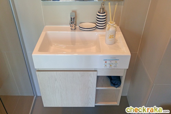 อ่างล้างหน้าทรงสี่เหลี่ยม วัสดุเป็นอะคริลิก ยี่ห้อ Charmer มีพื้นที่วางของด้านข้าง
